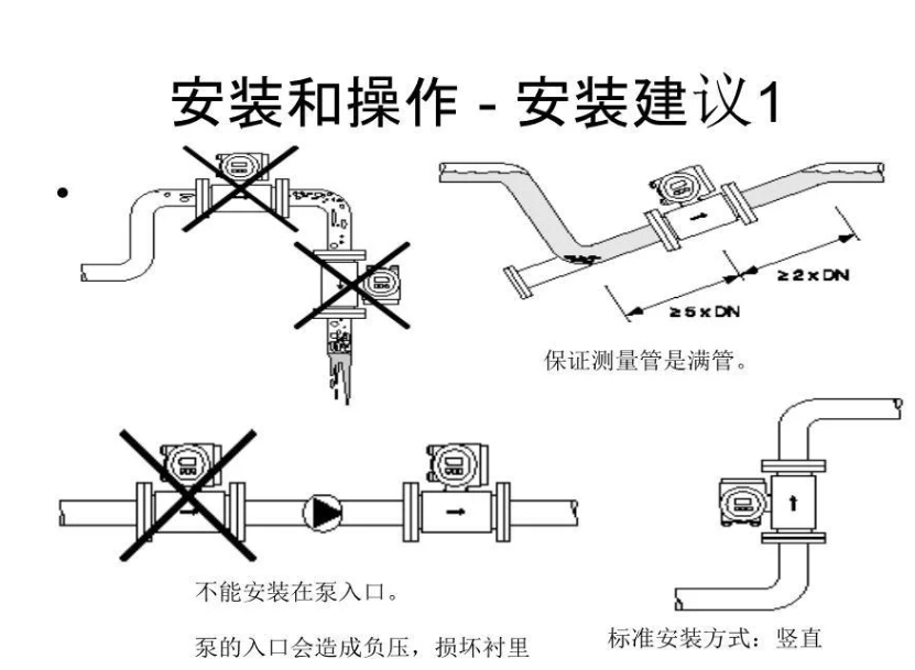 电磁流量计是根据法拉第电磁感应定律进行流量测量的流量计。电磁流量计的优点是压损极小,可测流量范围大。最大流量与最小流量的比值一般为20:1以上,适用的工业管径范围宽,可达3m,输出信号和被测流量成线性,精确度较高,可测量电导率≥5μs/cm的酸、碱、盐溶液、水、污水、腐蚀性液体以及泥浆、矿浆、纸浆等的流体流量。但它不能测量气体、蒸汽以及纯净水的流量。