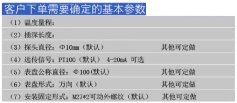 远传输出信号:默认输出PT100热电阻,可选装4-20ma输出。